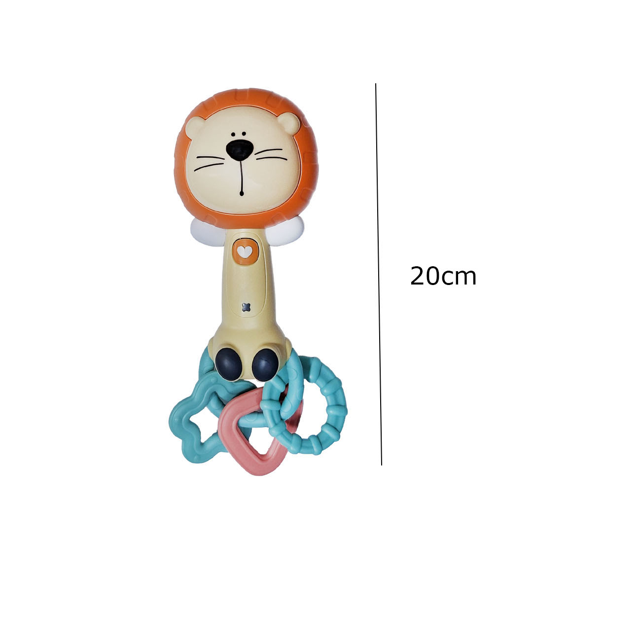 این جغجغهی موزیکال با طراحی بانمک شیر، یک اسباببازی ایدهآل برای سرگرمی و تقویت مهارتهای نوزاد است. بدنهی خوشرنگ و فانتزی آن همراه با چراغهای ملایم و صدای موزیکال دلنشین، توجه کودک را جلب کرده و او را ساعتها سرگرم میکند.