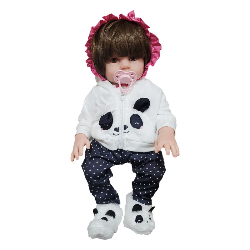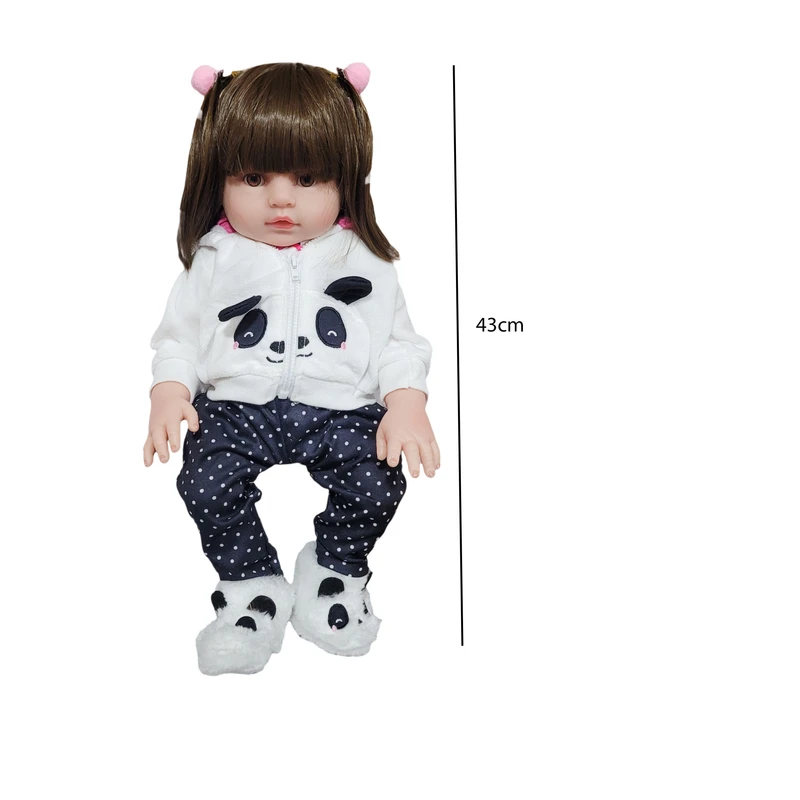 عروسک تمام سیلیکونی دختر لباس پاندا قد 43 سانتی متر